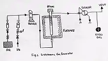Synthesised in the catalytic retort(s) of endothermic generators, the gas in the endothermic atmosphere is combined with an additive gas including natural gas, propane (C3H8) or air and is then used to improve the surface chemistry work positioned in the furnace.[2]