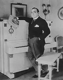 Prior to World War I, Caruso had been romantically linked to an Italian soprano, Ada Giachetti, who was a few years older than he was.[26] Though already married, Giachetti bore Caruso four sons during their liaison, which lasted from 1897 to 1908. Two survived infancy: Rodolfo Caruso (1898–1951) and singer/actor Enrico Caruso Jr. (1904–1987). Ada had left her husband, manufacturer Gino Botti, and an existing son to cohabit with the tenor. Information provided in Scott's biography of Caruso suggests that she was his vocal coach as well as his lover.[27] Statements by Enrico Caruso Jr. in his book tend to substantiate this.[28][29] Her relationship with Caruso broke down after 11 years and they separated. Giachetti's subsequent attempts to sue him for damages were dismissed by the courts.[30]