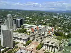 The Erastus Corning Tower, also known as the Mayor Erastus Corning 2nd Tower or simply the Corning Tower, is a skyscraper located in downtown Albany, New York. Completed in 1973 and sided with Vermont Pearl marble and glass, the state office building is part of the Empire State Plaza. At 589 feet (180 m) and 44 stories[1] in height, it is the tallest skyscraper in the state of New York outside of New York City. Erastus Corning 2nd, the building's namesake, was the mayor of Albany for over 40 years from 1941 to 1983. The tower was dedicated to him in March 1983 during his hospitalization. Before that dedication, it was known as the "Tower Building".