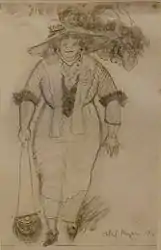 Mae Ethel Klinck Myers (August 23, 1881 - May 24, 1960), better known as Ethel Myers, was a New York Realist artist and sculptor strongly influenced in her work by the goals of the Ashcan School and its leader and famous teacher, Robert Henri. Her earliest subjects for pictures involved her capturing the life of the Lower East Side as well as journeying to slums in other cities such as Boston. Her greatest fame came some years later, after her marriage to New York artist Jerome Myers, when she became known for her figurative bronze statuettes and figurines "with a quite uncommon sense of humor, and with more than this, a feeling for form and movement that gives them life and conviction."[1][2] "Her three powerfully expressed sculptured figurines impress this reviewer with the fact that she is worthy of a place alongside of Daumier, Meunier and Mahonri Young."[3]