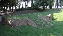After the 5th century, iconographic depictions show the deceased traveling to the underworld.[14] In several instances of Etruscan art, such as in the François Tomb in Vulci, a spirit of the dead is identified by the term hinthial, literally "(one who is) underneath". The souls of the ancestors, called man or mani (Latin Manes), were believed to be found around the mun or muni, or tombs,