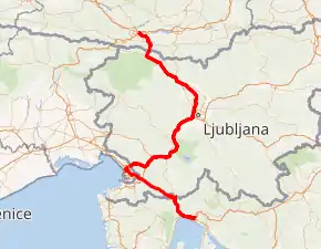 European route E61 forms part of the United Nations International E-road network, of which it is a Class A intermediate north–south route. 270 kilometres (170 mi) long, it connects the southern part of Austria to the Adriatic Sea.