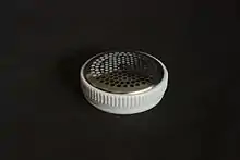 The fabric shaver (also known as a lint shaver or fuzz remover) is a handheld electrical device that has a rotating blade underneath a blade net. It allows users to remove fuzz and pills on a fabric without damaging the fabric.[1] It can be applied on different fabric-made items such as bedding, curtain or carpet, but mostly used for removing fuzz on a clothes, especially sweaters, hoodies, or clothes made by wool, angora or cashmere.[2] The fabric shaver can be powered by two different ways; using a battery charger or a dry cell. To use the fabric shaver, all the user has to do is check its battery and then press on/off button.[3]