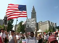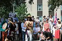 During this rally, most of the country was entering the first day of the first major summer heat wave of 2018, with temperatures ranging between high 90s and triple digits for various cities. Rally organizers cautioned people to use plenty of sunscreen and drinsk water; a few hundred yards away from the stage in Lafayette Square, a fire truck sprayed its hose in the air to cool off the crowd.[15] | ||