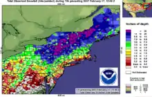 - NOAA (2007-02-14). "Snowfall totals from the February 13–14, 2007 winter storm". Retrieved 2007-02-15.