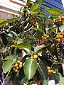 The flowers are solitary or in pairs and are in the axils of the leaves. They are concealed inside hollow receptacles which grow into orangish-red, many-seeded. 25 mm (1 in) figs following pollination.[5]