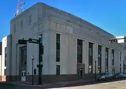The First National Bank Building in downtown Beaumont, Texas was built in 1937 and is an excellent example of Art Deco architecture.[2] The building is four stories tall and decorated with reliefs of workers and business people designed by Beaumont-based sculptor Matchett Herring Coe.[3]