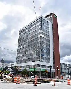 The First Security Bank Building in Salt Lake City, Utah, is a 12-story International Style commercial structure built in 1954. The building was designed by Wenceslao Sarmiento in consultation with W.G. Knoebel, chief designer for the Bank Building & Equipment Corporation of America, and local supervising architect Slack Winburn. It was listed on the National Register of Historic Places in 2005.[2] Constructed for the First Security Corporation, the building was the first skyscraper built in Salt Lake City after the Great Depression.[3] It was rehabilitated in 2004.[4]