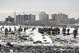 The Russian Investigative Committee opened a criminal investigation into any possible safety violations leading to the crash,[28] and allocated more than 50 investigators to work on the case.[29] In a statement, it listed "crew error, technical failure, adverse weather conditions and other factors" as possible reasons for the crash.[29] Terrorism was ruled out as a possibility[12] as no traces of explosives were found.[30]