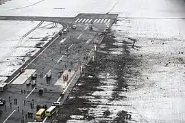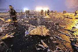 At 03:28, the crew began their second approach to runway 22, but again aborted their landing. The plane then rapidly climbed to 4,000 feet (1,200 m) before going into a 45 degree dive, and at 03:42 crashed onto the runway not far from the threshold, skidding a few meters and exploding.[22][25] Pieces of the aircraft were strewn across runway 22 during the impact.