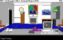 The game is completely redesigned and bears little resemblance to the previous installments. The game centres around a graphical screen of the manager's office with different parts of the game accessed by clicking on various items (e.g. the computer screen for results and fixtures, the picture of the team for training etc.). The game features a full 92 team league system (including the Charity Shield for the first time) and the teams begin the first season in the correct divisions (the 91/92 season for most versions, the 92/93 season including the newly formed Premier League in the C64 version)[32] but the player's team, as in previous games, will always begin in the bottom division. The players, however, do not resemble real footballers and have random names (always shown with middle initials). The game always begins with a team of aging players with low skill ratings.