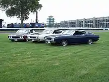 The Ford Torino Talladega is a muscle car that was produced by Ford only during the first few weeks of 1969. It was named for the Talladega Superspeedway, which opened the same year. The Talladega was a special, more aerodynamic version of the Torino / Fairlane Cobra, produced specifically to make Ford even more competitive in NASCAR racing, and it was sold to the public only because homologation rules required a certain minimum number of cars (500 in 1969) be produced and made available.