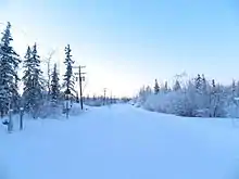 Summer temperatures are exceptionally high for such a northerly area, being far warmer than the tree line threshold. The highest temperature ever recorded in Alaska occurred in Fort Yukon on June 27, 1915, when it reached 100 °F or 37.8 °C.[11][12] This was also the highest temperature recorded north of the Arctic Circle until June 20, 2020, when it was finally exceeded by a 38 °C or 100.4 °F reading at Verkhoyansk,[13][14] a location similarly known for its extremely continental climate.