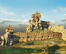 Tustan was a Medieval cliff-side fortress-city and customs site of the 9th—16th centuries, an Old Rus cliff-side defensive complex. Its remains are located in the Ukrainian Carpathians (Eastern Beskids), in the Skole district of the Lviv oblast, near the village of Urych, southwards from the town of Boryslav and to the southern-east from the village of Skhidnytsia.[1] The unique monument of history, archeology, architecture, and nature is situated amidst the woods of Pidhorodtsi Forestry and is part of the Tustan Site Museum.
