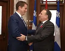 On October 18, 2018, Legault was sworn in as Premier of Quebec, marking the end of nearly 50 years of Liberal and Parti Québécois rule in the province.[22] He also announced new members to the province's 26-member cabinet.[22]