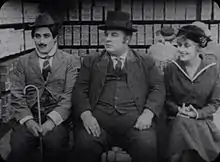 ![]() Syd Chaplin, Frank Alexander, and Joy Lewis in A Lover's Lost Control (1915) | |