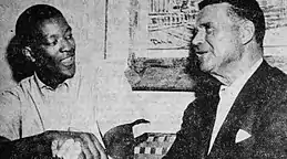 ![]() Lane (right) shaking the hand of Bill McGill after he signed with the Chicago Packers in May 1962 | |