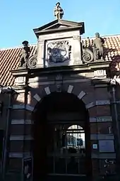 The gate with Latin inscription in the courtyard was moved from the Prinsenhof, where it was originally the gate to the Latin school Stedelijk Gymnasium Haarlem