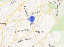 Fredens Church (Danish: Fredenskirken, Peace Church) is a church in Aarhus, Denmark. The church is located in the district of Viby, 3 km south of Aarhus city centre. It is a parish church within the Church of Denmark, servicing a parish population of 7.145 (2015).[1][2] Fredens Church was built between 1958 and 1960 from designs by architects F. Niclasen and Aksel Skov when Fredens Parish was created from northern areas of Viby Parish in 1960. The church features the church room, a chapel and community facilities which encloses a courtyard.[3] The name of the church and parish means "The peace" and refers both to hope for peace following the Second World War and the Fredensvang neighbourhood the church is situated in.[4]