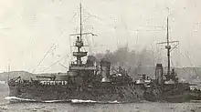 After commissioning, Liberté was assigned to the 2nd Division of the Mediterranean Squadron, along with her sisters Justice (the divisional flagship) and Vérité.[8] In June and July, the Mediterranean and Northern Squadrons conducted their annual maneuvers off Bizerte. The 2nd Division ships visited Bizerte in October. The entire squadron was moored in Villefranche in February 1909 and thereafter conducted training exercises off Corsica, followed by a naval review in Villefranche for President Armand Fallières on 26 April. During this period of training, on 17 March, Liberté and the battleships Justice, Patrie, and République conducted shooting training, using the old ironclad Tempête as a target.[9]