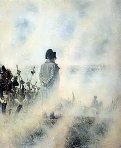 On the morning of September 14, Akinfov, with a trumpeter from Miloradovich's convoy, drove up to the enemy forward chain just at the time when the shooting had resumed and Murat had already ordered his cavalry to attack the Russian positions.[4] Colonel of the 1st Horse-Jaeger Regiment, Clément Louis Elyon de Villeneuve, who went into the chain at the signal of a trumpeter, sent Akinfov to the commander of the II Cavalry Corps, General Horace François Bastien Sébastiani. The latter himself proposed to transmit the letter to Murat, but Akinfov said that he was instructed not only to personally deliver the letter to the Neapolitan King, but also to convey something to him in words. Then Sebastiani nevertheless ordered to send the Russian parliamentarians to Murat.[3]