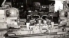Some applications and patents connected with friction welding were dated back to the turn of the century[2] and rotary friction welding is the oldest of this methods.[3] W. Richter patented the method of linear friction welding (LFW) process in 1924[4] in England and 1929[4] in Germany, however, the description of the process was vague[3] and H.Klopstock patented the same process in the USSR 1924.[4] But first description and experiments releted to rotary friction welding took place in the Soviet Union in 1956,[2][4] machinist named A. J. Chdikov has realized scientific studies and suggested the use of this welding method as a commercial process.[4] The process was introduced to the USA in 1960.[2] The American companies Caterpillar Tractor Company (Caterpillar - CAT), Rockwell International, and American Manufacturing Foundry all developed machines for this process. Patents were also issued throughout Europe and the former Soviet Union. The first studies of fricton welding in England were carried out by the Welding Institute in 1961.[4] The USA with Caterpillar Inc. and MTI developed an inertia process in 1962.[2][4] Europe with KUKA AG and Thompson launches rotary friction welding for industrial applications in 1966,[5] developed a direct-drive process and in 1974[5] builds rRS6 the double spindle machine for heavy truck axles.[5] Another method was invented and experimentally proven at The Welding Institute (TWI) in the UK and patented in 1991 Friction stir welding (FSW) process[6] a solid-state joining process that uses a non-consumable tool to join two facing workpieces without melting the workpiece material. In 2008 KUKA AG developed the friction welding machine SRS 1000 with a forged force of 1000 tons.[5]