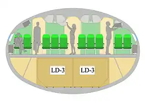 The new wide-body aircraft uses an oval fuselage configuration. The chosen form ensures minimal dimensions for the aircraft with 300–350 passengers in three cabins, three main aisles, no less than 500 mm (20 inches) wide and spaces between seats no less than 810 mm (32 inches). In an all-economy layout, the number of seats can be increased to 400. The aircraft can accommodate 302 passengers in a basic three-class layout (Business Class, Premium Economy and Economy).[4]