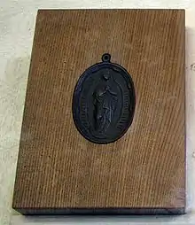 Fumi-e were usually cast from bronze, but others were made of painted stone and some were woodblock prints. There are relatively few surviving fumi-e,[6] as most were simply thrown away or recycled for other uses. Some examples were displayed by the Smithsonian in their 2007 exhibition "Encompassing the Globe: Portugal and the World in the 16th and 17th Centuries."[11][12]