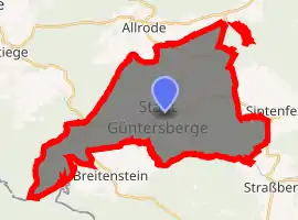 Güntersberge is a village and a former town in Harz District, in Saxony-Anhalt, Germany. It holds the status of an officially recognized resort town since 2001. Güntersberge, together with the other municipalities of the former Verwaltungsgemeinschaft ("collective municipality") Unterharz, merged into the town of Harzgerode as of 1 August 2009.