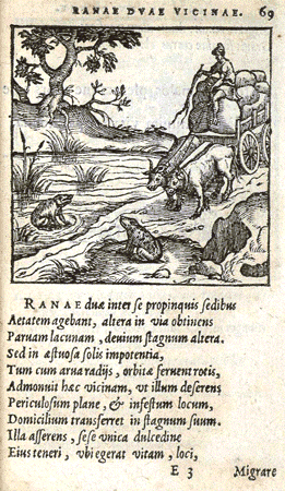 Besides fables collected 'from ancient authors', Mediaeval folk tales such as The miller, his son and the donkey and The Mice in Council were included in the work as well. It was to go through some forty European editions, including translations into Italian, English, German, Dutch and French. In England the 1741 edition, which included Perrault's French translations and an English translation, was to serve as a school textbook. But the work was successful and influential for other reasons than the fineness of the language. The illustrations by Pirro Ligorio which accompanied each fable were also esteemed. Published at the time of a taste for Emblem books, the morals with which Faerno furnished the fables by way of conclusion were seen as contributing to that fashion and widening the subject matter to include the Aesopic fable too.[8]