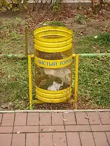 In urban areas, garbage of all kinds is collected and treated as municipal solid waste; garbage that is discarded in ways that cause it to end up in the environment, rather than in facilities designed to receive garbage, is considered litter. Litter is a form of garbage, and municipal solid waste that is improperly disposed of, and which therefore enters the environment, is treated as litter.[8] Notably, however, only a small fraction of garbage that is generated becomes litter, with the vast majority being disposed of in ways intended to secure it from entering the environment.[9]
