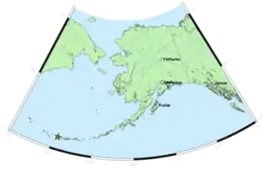 Gareloi (Russian: Горелый) or Anangusook (Aleut: Anangusix̂[1]) is a volcanic island in the Delarof Islands of the Aleutian Islands of Alaska. It is located between the Tanaga Pass and the Amchitka Pass.