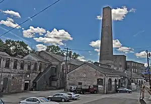 Around 1760, Cornelius Osborn built a grist mill at a waterfall on the Minisceongo Creek; this later became the site of the Calico Works. In 1828, a rolling mill and a nail factory were established a bit upstream on the site of a former grist mill by John I. and George Suffern. From 1850 to 1858, John I. Suffern manufactured coarse wrapping paper at that location.[1]