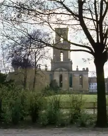 The Garrison Church (German: Garnisonkirche) was a Protestant church in the historic centre of Potsdam. Built by order of King Frederick William I of Prussia according to plans by Philipp Gerlach from 1730 to 1735, it was considered as a major work of Prussian Baroque architecture. With a height of almost 90 metres (295 feet), it was Potsdam's tallest building and shaped its cityscape. In addition, the Garrison Church was part of the city's famous "Three Churches View" together with St. Nicholas Church and Holy Spirit Church. Damaged during the British bombing in World War II, the East German authorities demolished church in 1968. After the German reunification the Garrison Church is currently being rebuilt as a centre for remembrance and reconciliation.