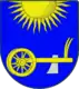Heraldic Description:: „The coat of arms is blue under a radiant golden half sun a golden plow with a silver ploughshare.“[2]