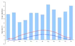Rainfall reaches 1,200 mm (47.2 in) a year in some areas. In the summer, excessive heat is rare and temperatures drop noticeably at night. Low temperatures and humidity make for what those living in this part of the country call, optimistically, an "invigorating climate".