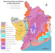 - This article describes the geology of the historic county of Monmouthshire. It includes the modern administrative county and the 'principal areas' of Torfaen, Newport and Blaenau Gwent together with those parts of Cardiff and Caerphilly to the east of the Rhymney River.