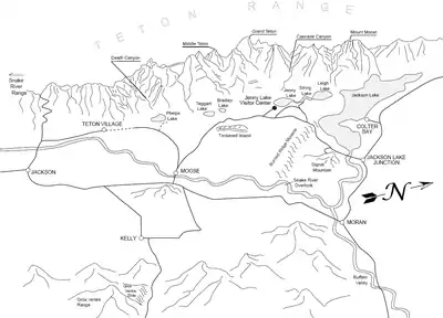 By about 34 million years ago, these forces had uplifted a broad part of western Wyoming into a continuous high plateau.[10] This region includes areas now occupied by the Teton Range, Gros Ventre Range, Wind River Mountains and other mountain ranges to the south and east of the Tetons. A separate area of uplift called the Targhee Uplift formed north of park borders around this time.
