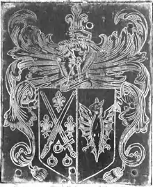 - Firstly to Susan Steyning (died 1614), the eldest daughter of Phillip Steyning (1509–1589), lord of the manor of Holnicote in Somerset,[12] by his wife Alice Fry (1533–1605), a daughter of William Fry, lord of the manor of Yarty in Devon.[13] Montgomery erected a monumental brass tablet in Washfield Church in Devon to his mother-in-law Alice Fry, on which are engraved his arms impaling Steyning. It comprises a lengthy rhyming verse on the lady's good moral character, composed by Montgomery.[14] Susan Steyning's younger sister Margaret Steyning married John Willoughby of Payhembury in Devon, with whom Montgomery frequently corresponded. The correspondence was preserved by Willoughby's granddaughter Mary Willoughby, the wife of George Trevelyan, lord of the manor of Nettlecombe in Somerset, which collection is now known as the Trevelyan Papers. These provide an important source for the biography of Montgomery. By his wife Susan Steyning he had children as follows: