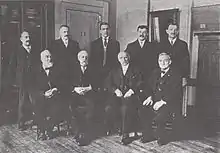![]() A photograph of the Mint engravers. Morgan is seated in the front row, second from right. | |