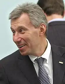German Borisovich Khan (Russian: Герман Борисович Хан; born 24 October 1961) is a Ukrainian-Russian billionaire businessman.[3][4] After graduating from university in 1988 he worked in a wholesale business selling consumer items,[5] before setting up his own cooperative.[1] He was then appointed the head of the wholesale trade business Alfa Eco as part of the Alfa Group Consortium, by Mikhail Fridman.[5][6] He became president of Alfa Eco in 1996[7] and was instrumental in directing the company to focus on export and the oil trade.[1] When Alfa bought Tyumen Oil (TNK) in 1997, he joined the board of directors.[1] He was deputy chairman of TNK Oil Company[8] from 1997 until 2003.[5] In 2003, Khan worked with the other TNK owners to form a 50–50 joint venture with British Petroleum (BP),[9] in what was the largest foreign investment in Russia to date,[10] at US$8 billion.[11]