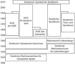 The German Olympic Sports Confederation (German: Deutscher Olympischer Sportbund or DOSB) was founded on 20 May 2006 by a merger of the Deutscher Sportbund (DSB), and the Nationales Olympisches Komitee für Deutschland (NOK) which dates back to 1895, the year it was founded and recognized as NOC by the IOC.
