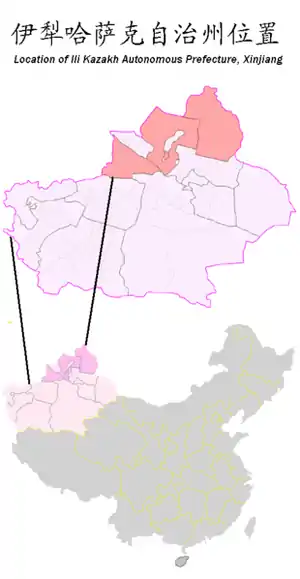 The Ghulja incident (Chinese: 伊宁事件; pinyin: Yīníng Shìjiàn; also referred to as the Ghulja Massacre)[1] was the culmination of the Ghulja protests of 1997, a series of demonstrations[2] in the city of Ghulja (known as Yining (伊宁) in Chinese) in the Xinjiang autonomous region of China (PRC) beginning in early February 1997.
