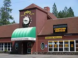The Gilchrist Mall was built in 1939. It was the first mall opened east of the Cascade Mountains. The mall included grocery store, post office, drugstore, barbershop, beauty parlor, liquor store, bowling alley, and a library. The mall also housed a club for Gilchrist Lumber Company employees. The club had a bar and lounge area, dance floor, pool tables, and a large meeting hall. While some of the businesses have changed over time, as of 2019 the mall buildings remain essentially unchanged.[3]