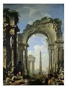 During the years 1738–1743 and 1754–1758, Servandoni produced a series of successful theatrical productions much in the style of seventeenth-century machine plays, with an emphasis on elaborate changes in décor and special effects, often set to music.[3] Unlike the machine plays of the seventeenth century, Servandoni's productions used pantomime rather than dialog, with a description of the story provided in the program. His productions were typically based on well-known stories from literature and mythology such as the "Spectacle de Pandore" (1739) which told the tale of Prometheus and Pandora or "La forêt enchantée" (1754) which was inspired by Torquato Tasso's "Jerusalem Delivered". He died in Paris in the early 1766.