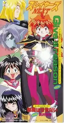 "Give a Reason" is a song by Japanese voice actress and recording artist Megumi Hayashibara. It was used as opening theme for the anime series Slayers Next, and on April 24, 1996 it was released as a single along with Masami Okui's song "Jama wa Sasenai" (邪魔はさせない), which was used as ending theme for the same series. The single charted at number 9 on the Oricon charts, becoming Hayashibara's highest peak at the time and her first top 10 single in the Japanese charts.