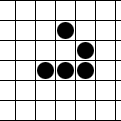 The glider is a pattern that travels across the board in Conway's Game of Life. It was first discovered by Richard K. Guy in 1970, while John Conway's group was attempting to track the evolution of the R-pentomino. Gliders are the smallest spaceships, and they travel diagonally at a speed of one cell every four generations, or . The glider is often produced from randomly generated starting configurations.[1] John Conway remarked that he wished he hadn't called it the glider. The game was developed before the widespread use of interactive computers, and after seeing it animated, he feels the glider looks more like an ant walking across the plane.[2]