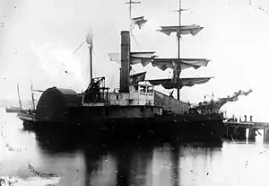 Goliah managed to reach St. Thomas (then not U.S. Territory, but rather part of the Danish West Indies, where fuel and provisions were secured. Goliah arrived in San Francisco, after 279 days, on January 21, 1851, carrying 13 passengers from Panama City.[1] Within days of its arrival, Charles Minturn, sent Goliah with passengers to the Gold Bluffs, on the northwest coast of California.[2] Meanwhile, four days later, Minturn advertised a quarter share of ownership in the Goliah, for sale.[3] Shortly after its return from the Gold Bluffs on February, Goliah was advertised for service doing what it was designed to do, towing ships from the sea to any point on San Francisco Bay.[4] On March 3, Goliah carried a whaling expedition to the Farallon Islands.[5] It also made occasional runs back and forth to Sacramento,[6] From April 2 it began making runs to Oregon by way of Trinidad, and it became a direct run from April 21.[7][8] From May 17, 1851, the Goliah was put on a regular run down the coast of California to San Diego, stopping at intermediate ports of Monterey, San Luis Obispo, Santa Barbara and San Pedro.[9] The Daily Alta California of July 14, 1851 reported it made the trip in 6 days and eighteen hours.[10] Goliah was withdrawn from this coastal run at the end of September 1851.[11]