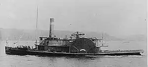 | Installed power: | Walking beam marine steam engine, single cylinder 50 inch diameter with 8 ft (2.4 m) stroke, generating 250 hp (190 kW). |