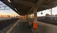 The station has one island platform serving two tracks, with additional tracks on either side for non-stop trains.